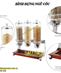 CEREAL DISPENSER WOODEN STAND ( TRIPLE )/ BÌNH ĐỰNG NGỦ CỐC CHÂN ĐẾ GỖ 3 NGĂN