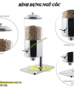 Trạm Ngũ Cốc Trung Tâm Cho Buffet Sáng Khách Sạn: Là bình chứa chính cho loại ngũ cốc phổ biến nhất (như cornflakes hoặc granola truyền thống) tại các bữa buffet sáng của khách sạn lớn, nơi có hơn 80% thực khách lựa chọn.