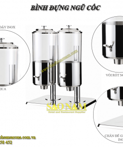 Trạm Ngũ Cốc Kép Cho Buffet Sáng Khách Sạn Lớn: Là bình chứa chính cho hai loại ngũ cốc phổ biến nhất (như cornflakes và granola) tại các bữa buffet sáng của khách sạn quy mô lớn, nơi có hàng trăm thực khách sử dụng.