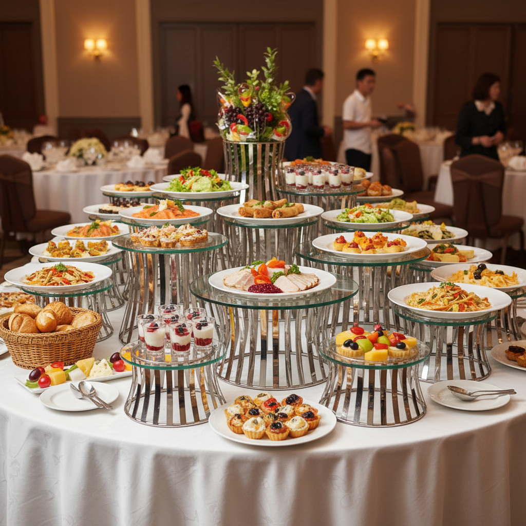 Chân Để Inox Décor SN#520509: Giải Pháp Trình Bày Tinh Tế Cho Không Gian Tiệc Buffet Đẳng Cấp