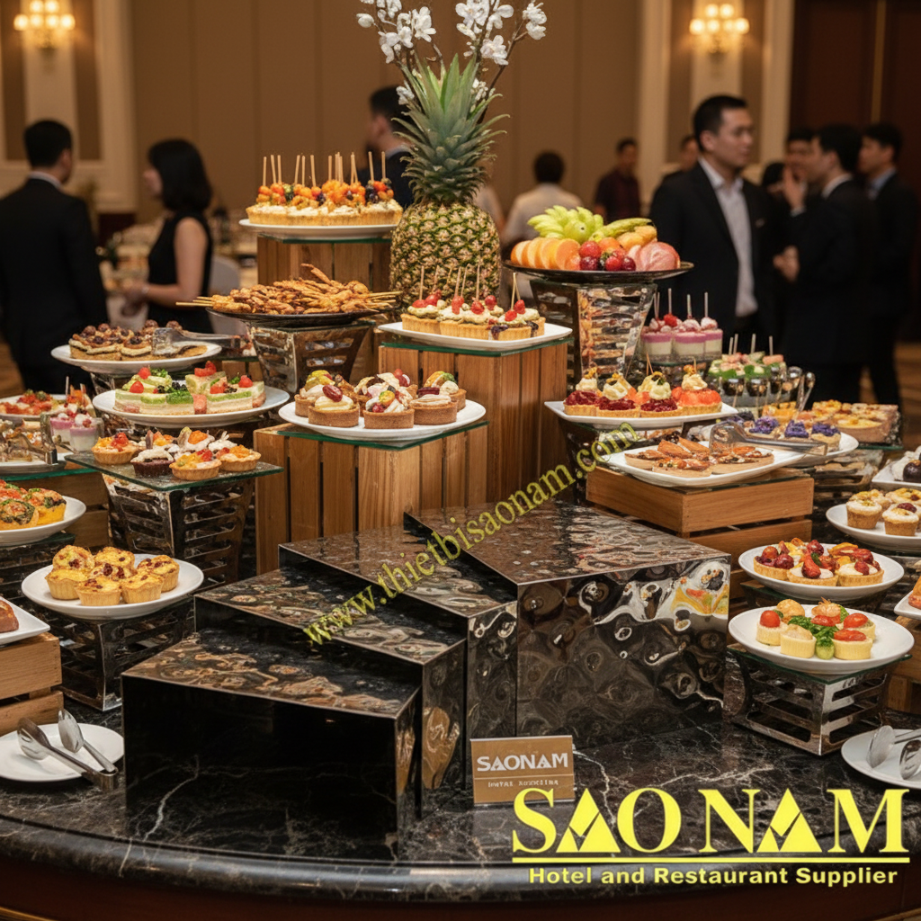 Chân Để Inox Decor Buffet Hình Chữ Nhật SN#520538: Nghệ Thuật Sắp Đặt Không Gian Buffet Chuyên Nghiệp