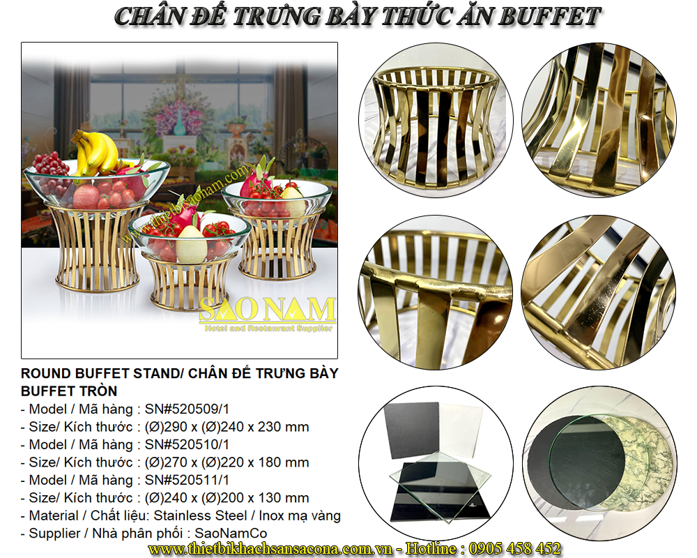 Chân Để Inox Décor Vàng SN#520509/1: Ánh Vàng Sang Trọng Cho Bàn Tiệc Buffet Đẳng Cấp