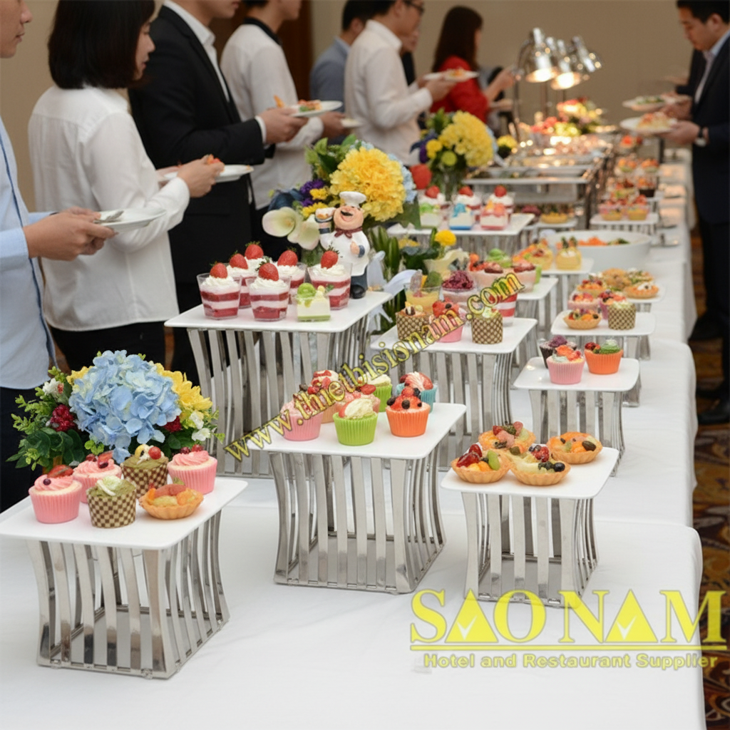 Trong thiết kế buffet đương đại, sự sắp xếp có trật tự và tính thẩm mỹ cao là yếu tố then chốt tạo nên thành công. Chân Để Inox Vuông SN#520512 không đơn thuần là một dụng cụ tiệc buffet, mà là một hệ thống kiến trúc module hoàn hảo, mang đến giải pháp trình bày chuyên nghiệp và sáng tạo cho mọi không gian ẩm thực.