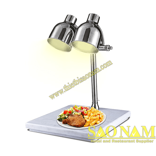 FOOD COVER WITH HEATING LAMPS/ ĐÈN HÂM NÓNG THỨC ĂN INOX ĐẾ ĐÁ TRẮNG 2 BÓNG ( 2 BÓNG KÉP )