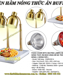 FOOD COVER WITH HEATING LAMPS/ ĐÈN HÂM NÓNG THỨC ĂN INOX VÀNG ĐẾ ĐÁ TRẮNG 2 BÓNG ( 2 BÓNG RỜI )