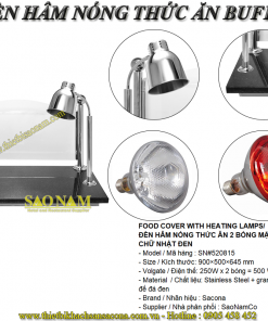 ĐÈN HÂM NÓNG THỨC ĂN 2 BÓNG MẶT ĐÁ CHỮ NHẬT ĐEN