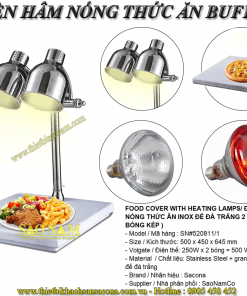 FOOD COVER WITH HEATING LAMPS/ ĐÈN HÂM NÓNG THỨC ĂN INOX ĐẾ ĐÁ TRẮNG 2 BÓNG ( 2 BÓNG KÉP )