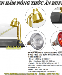 FOOD COVER WITH HEATING LAMPS/ ĐÈN HÂM NÓNG THỨC ĂN 2 BÓNG INOX VÀNG MẶT ĐÁ CHỮ NHẬT ĐEN