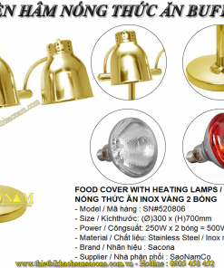 FOOD COVER WITH HEATING LAMPS / ĐÈN HÂM NÓNG THỨC ĂN INOX VÀNG 2 BÓNG