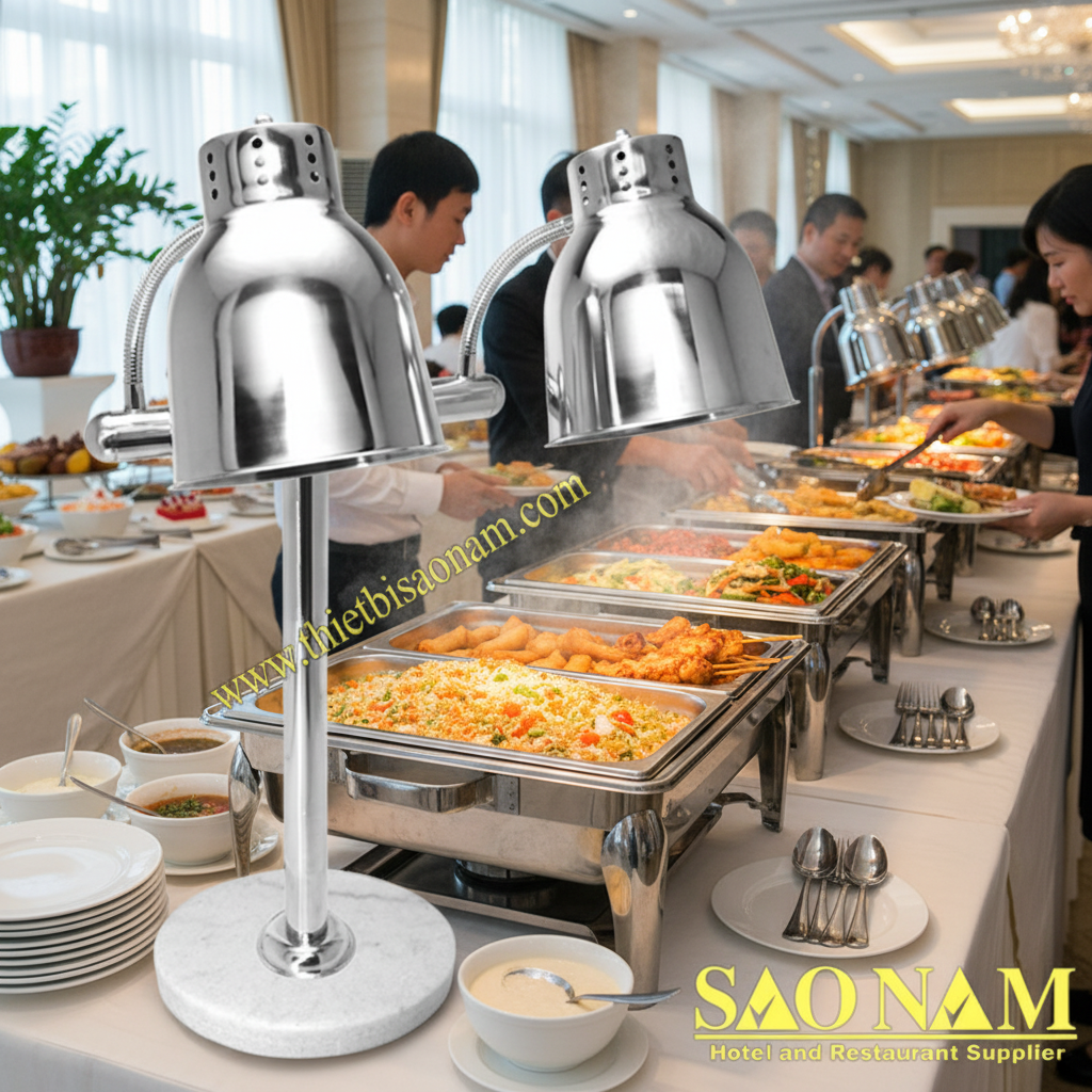 Hỗ Trợ Đắc Lực Trong Tiệc Đứng (Standing Reception) & Gala Dinner: Với khả năng che phủ rộng, một vài chiếc đèn SN#520804 có thể tạo thành các “điểm nóng” tập trung, giữ nóng đa dạng các món finger food, khai vị nóng trên một không gian nhỏ gọn, vừa tiết kiệm diện tích vừa sang trọng.
