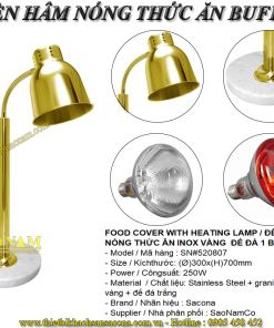FOOD COVER WITH HEATING LAMP / ĐÈN HÂM NÓNG THỨC ĂN INOX VÀNG ĐẾ ĐÁ 1 BÓNG