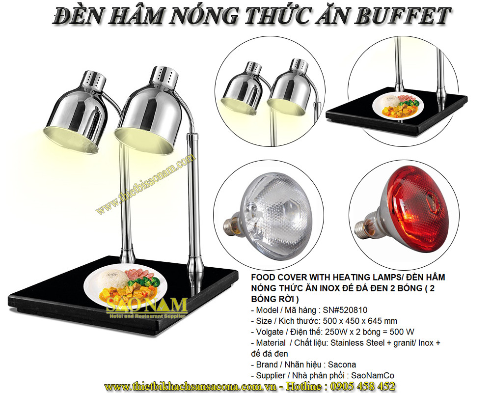 FOOD COVER WITH HEATING LAMPS/ ĐÈN HÂM NÓNG THỨC ĂN INOX ĐẾ ĐÁ ĐEN 2 BÓNG ( 2 BÓNG RỜI )