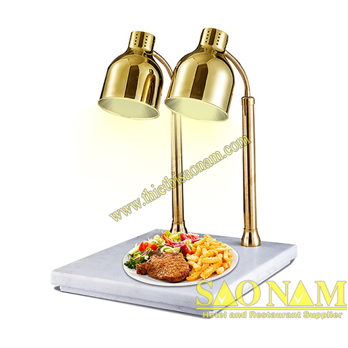 Đèn Hâm Nóng Thức Ăn Inox Vàng Đế Đá Trắng 2 Bóng Rời SN#520814