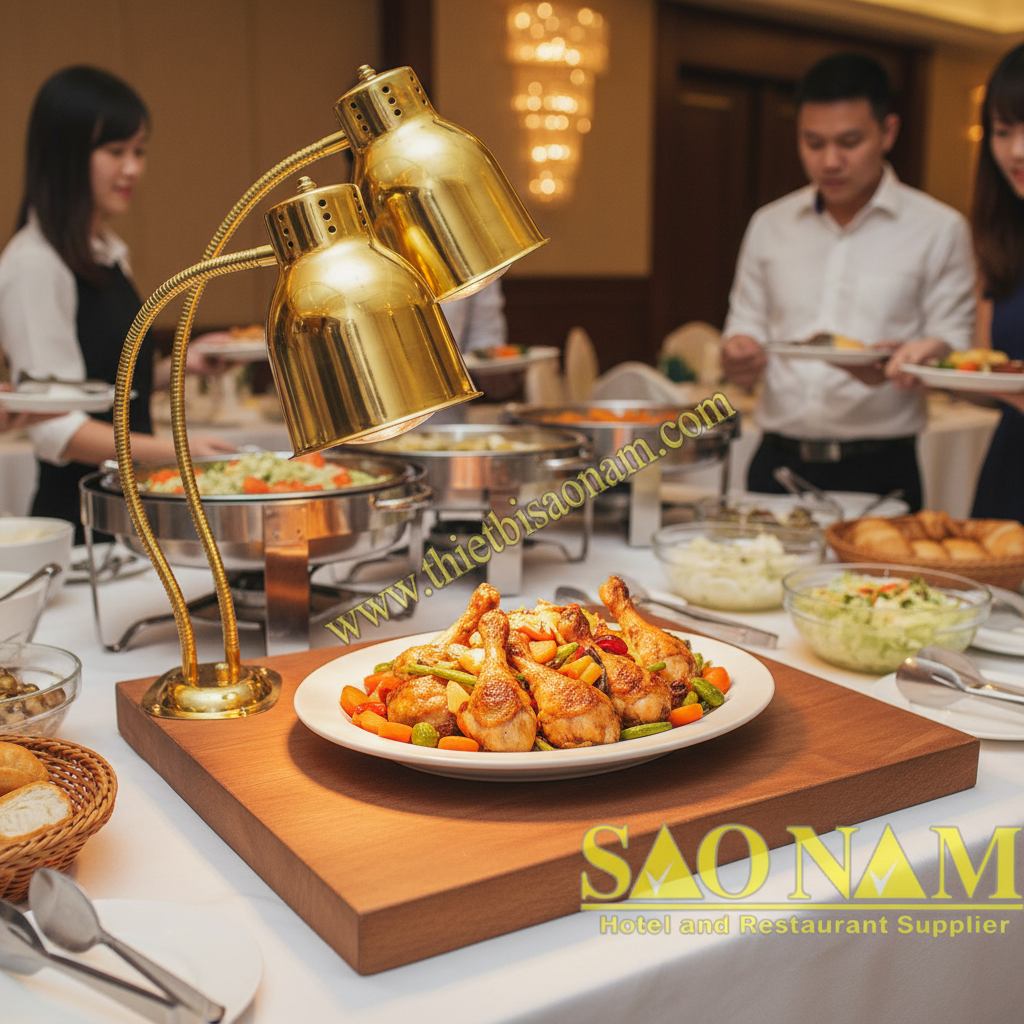 FOOD COVER WITH HEATING LAMPS/ ĐÈN HÂM NÓNG THỨC ĂN MẶT GỖ 2 BÓNG