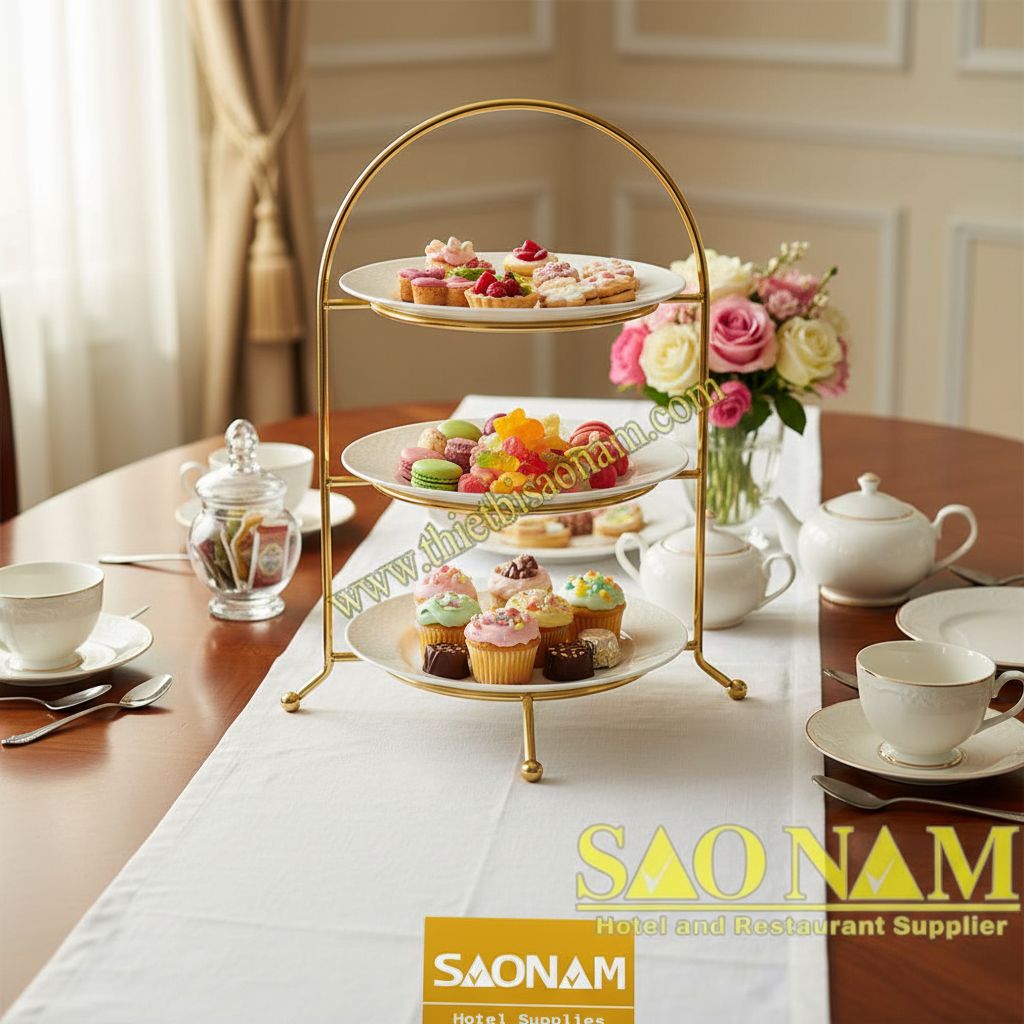 BUFFET DISPLAY STAND/ GIÁ ĐỂ TRỨC ĂN 3 TẦNG ( Bao Gồm Dĩa )