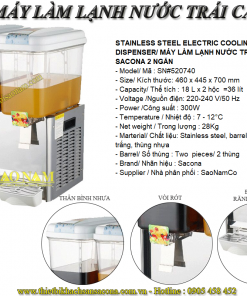 STAINLESS STEEL ELECTRIC COOLING JUICE DISPENSER/ MÁY LÀM LẠNH NƯỚC TRÁI CÂY SACONA 18L ĐÔI