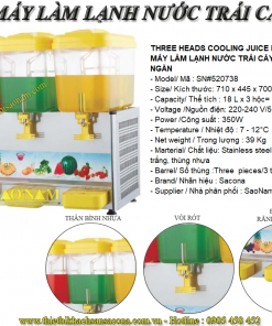 THREE HEADS COOLING JUICE DISPENSER/ MÁY LÀM LẠNH NƯỚC TRÁI CÂY SACONA 18L 3 NGĂN