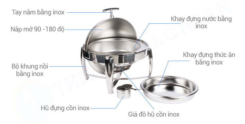 Công đựng thức ăn buffet với thiết kế trục bản lề mở được 180 độ cho phép bạn lấy thức ăn dễ dàng, dòng nồi này được sử dụng phổ biến trong nhà hàng, khách sạn từ 2 – 5 sao, trong gia đình villa, lâu đài…