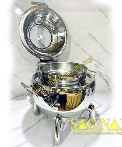 STAINLESS STEEL SOUP WARMER WITH VISIBLE LID / NỒI HÂM CHÁO – SOUP SACONA TRÒN CÓ CHÂN NẮP KIẾNG