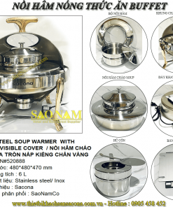 STAINLESS STEEL SOUP WARMER WITH GOLD LEG & VISIBLE COVER / NỒI HÂM CHÁO SOUP SACONA TRÒN NẮP KIẾNG CHÂN VÀNG