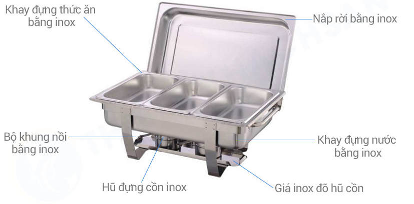 – Theo hình dạng : Nồi hâm Buffet tròn, Nồi hâm Buffet chữ nhật, Nồi hâm Buffet hình vuông.