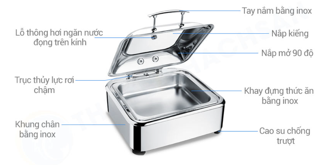 – Theo hình dạng : Nồi hâm Buffet tròn, Nồi hâm Buffet chữ nhật, Nồi hâm Buffet hình vuông.