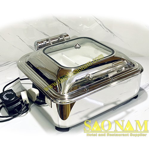 SQUARE CHAFING DISH WITH GLASS LID / NỒI HÂM THỨC ĂN SACONA VUÔNG NẮP KIẾNG DÙNG ĐIỆN