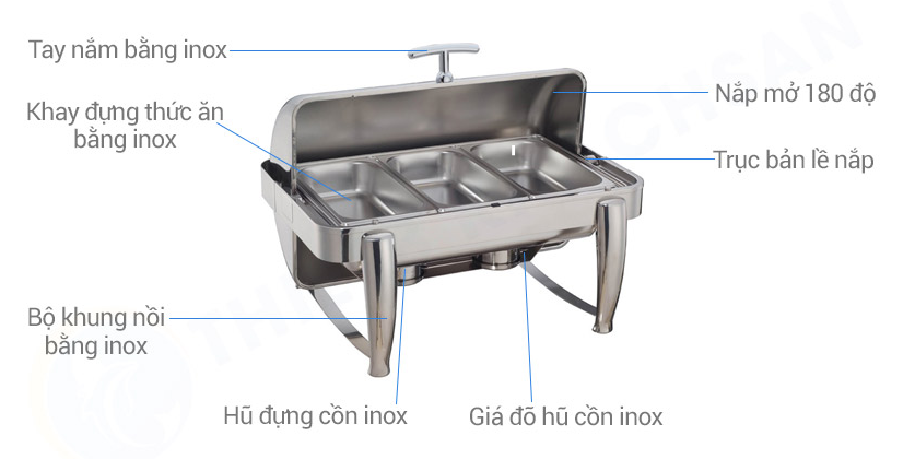FULL SIZE CHAFING DISH / NỒI HÂM THỨC ĂN SACONA HÌNH CHỮ NHẬT CHÂN INOX