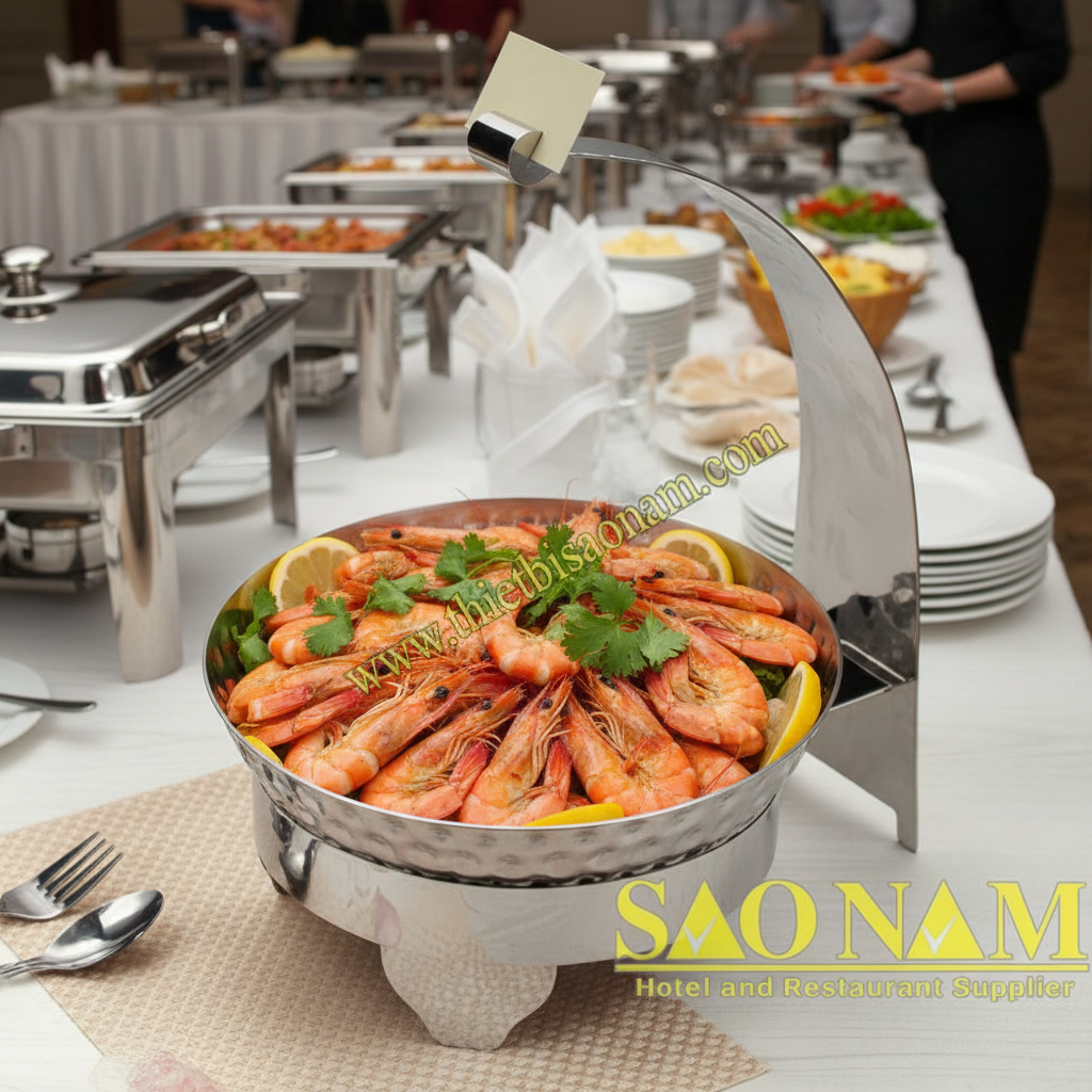 Trong một không gian tiệc buffet được đầu tư bài bản, mỗi chi tiết từ lớn đến nhỏ đều phải được cân nhắc kỹ lưỡng để tạo nên một tổng thể hài hòa, sang trọng và đầy sức hút. Đặc biệt, tại các quầy trái cây – nơi tôn vinh vẻ đẹp thuần khiết và tươi mới của thiên nhiên – việc lựa chọn dụng cụ tiệc buffet phù hợp càng trở nên quan trọng. Nó không chỉ đơn thuần là vật đựng, mà phải là một phần của tác phẩm nghệ thuật, góp phần nâng tầm giá trị thẩm mỹ và kích thích mọi giác quan. Thuyền Inox Trưng Bày Trái Cây SN#520928 từ SaoNamCo ra đời như một giải pháp hoàn hảo cho bài toán đó. Với thiết kế hai phần độc đáo – phần đế rộng rãi và phần tô chứa thanh thoát – sản phẩm này mang đến một khái niệm mới về sự cân đối, vững chãi và tinh tế, trở thành tâm điểm không thể bỏ qua tại mọi bữa tiệc buffet cao cấp trong nhà hàng, khách sạn hay các sự kiện đặc biệt.