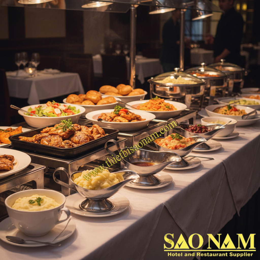 Trong bữa tiệc buffet, nếu các món ăn là những hòn đảo hương vị trải dài, thì dụng cụ tiệc buffet đóng vai trò là những con thuyền chở đầy gia vị, giúp thực khách định hướng và làm chủ hành trình khám phá của riêng mình. Trong số đó, Thuyền Rót Sốt không đơn thuần là một vật đựng; nó là một công cụ trao quyền tinh tế, biến hành động thêm gia vị từ một thao tác thông thường thành một nghi thức cá nhân hóa, chính xác và đầy tính thẩm mỹ. Bộ ba sản phẩm Thuyền Rót Sốt SN#520590 (100ml), SN#520591 (140ml), và SN#520592 (200ml) từ SaoNamCo chính là hiện thân cho triết lý ấy: kiểm soát hoàn hảo dòng chảy của hương vị.