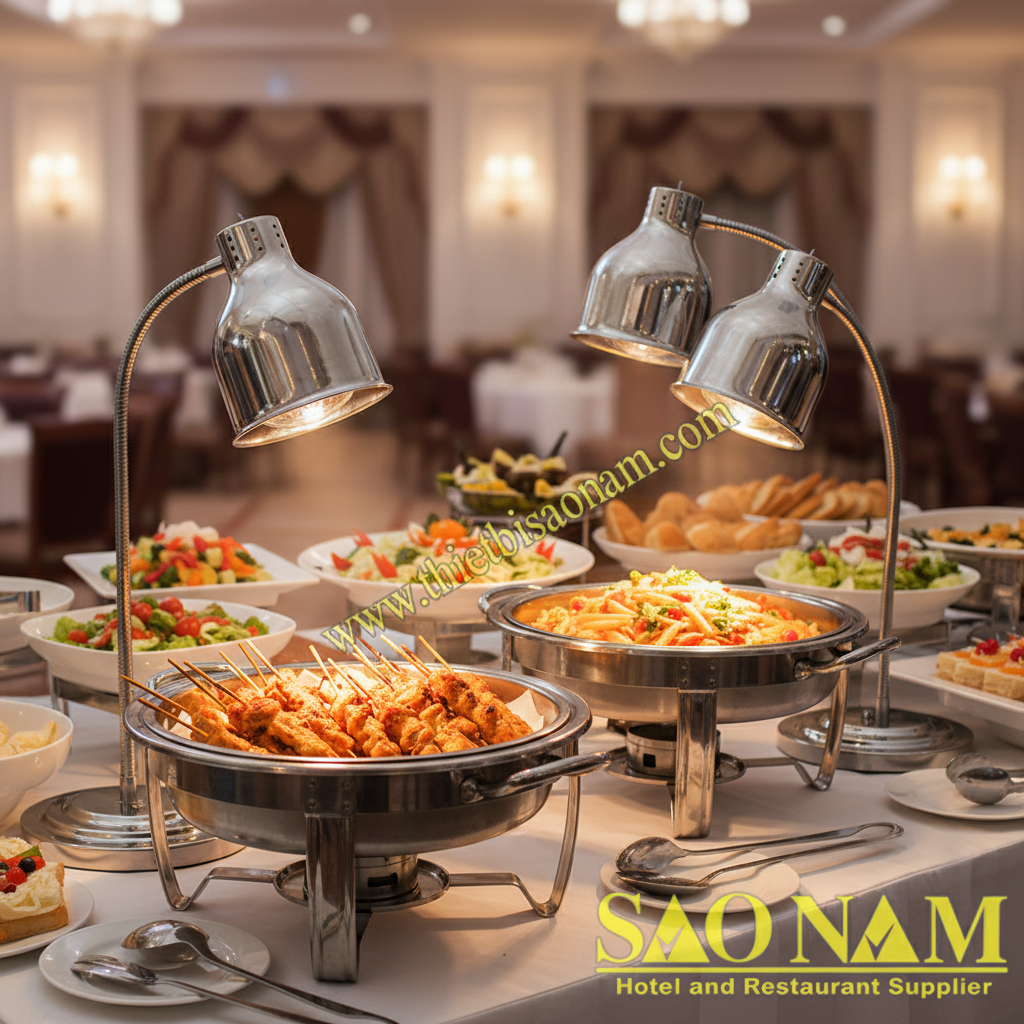 Trong các bữa tiệc buffet, khu vực món nóng luôn là tâm điểm thu hút thực khách. Việc giữ cho món ăn luôn nóng hổi, thơm ngon trong suốt thời gian phục vụ là bài toán quan trọng mà mọi nhà hàng, khách sạn đều phải giải quyết. Đèn hâm nóng thức ăn ra đời như một giải pháp tối ưu, không chỉ đảm bảo chức năng giữ nhiệt mà còn tích hợp khả năng chiếu sáng, tôn vinh vẻ đẹp tự nhiên của món ăn, kích thích vị giác thực khách.