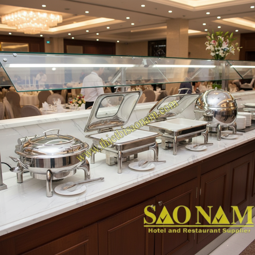 Trong thế giới ẩm thực buffet hiện đại, những món ăn nóng hổi, thơm ngon luôn là linh hồn của bữa tiệc. Không gì tuyệt vời hơn khi thực khách được thưởng thức những món ăn còn nguyên độ nóng, hương vị được giữ trọn vẹn trong suốt thời gian phục vụ. Để làm được điều đó, các nhà hàng, khách sạn cần những dụng cụ tiệc buffet cho tiệc – và nồi hâm thức ăn (chafing dish) chính là giải pháp không thể thiếu.
